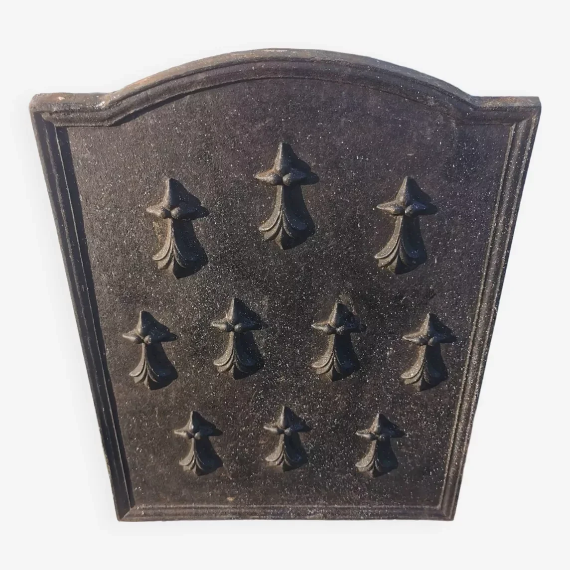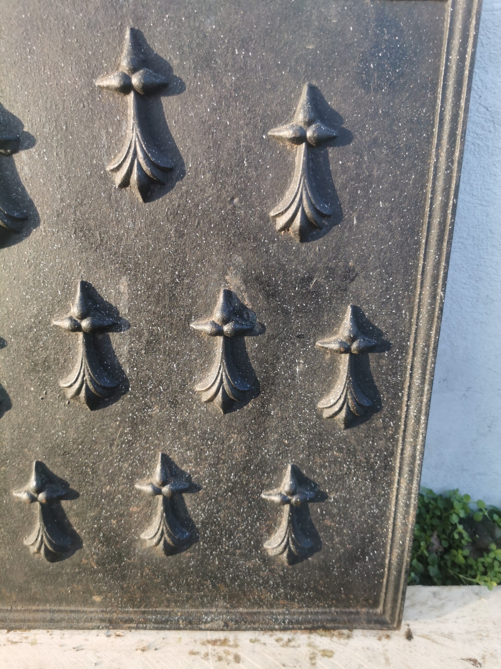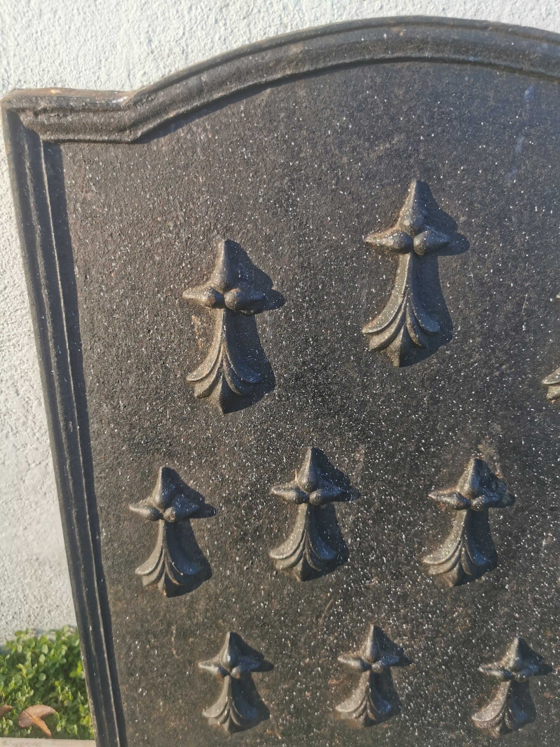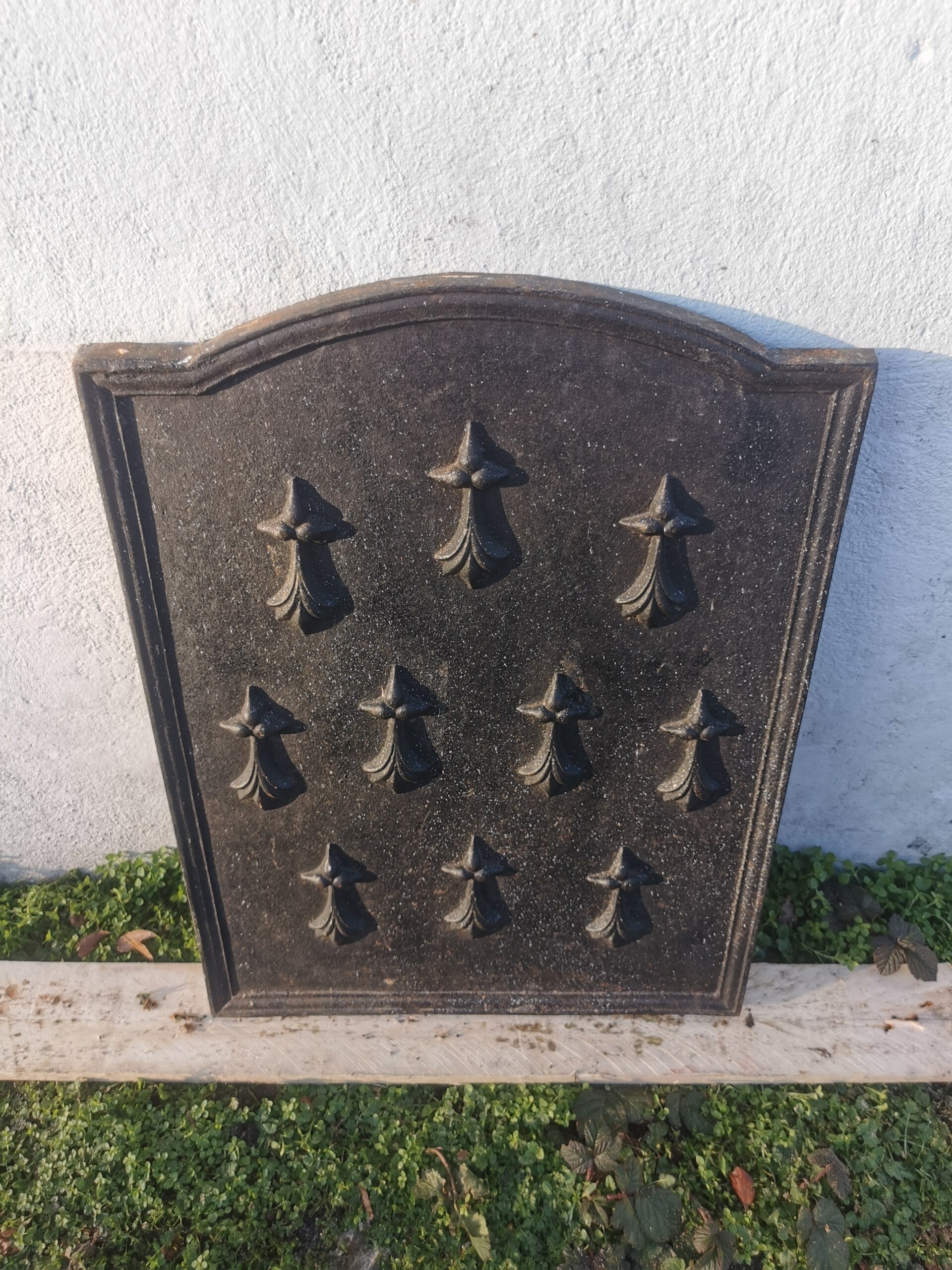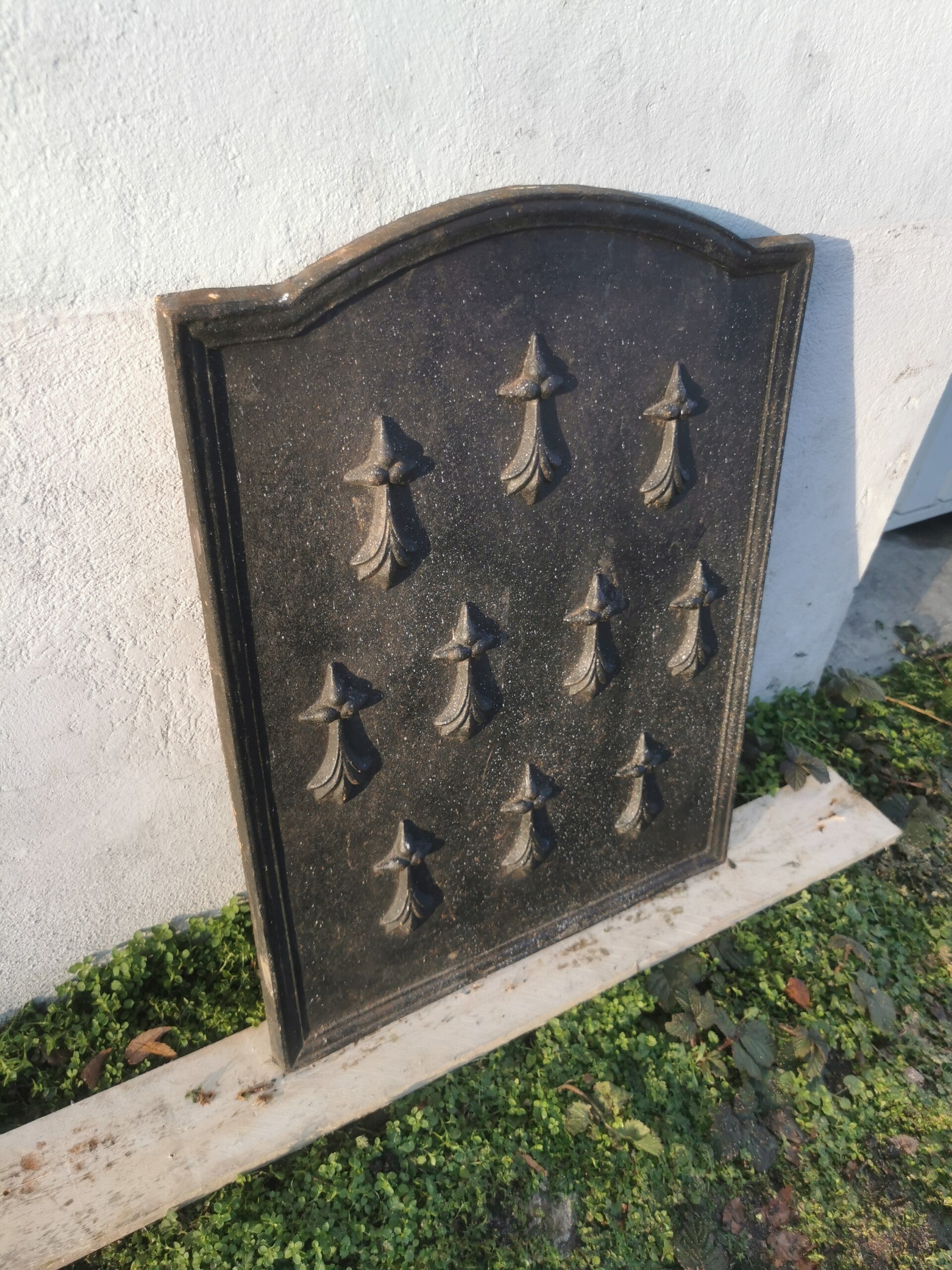 Plaque de cheminée ancienneEn très bel étatLongueur 40cmHauteur 53.5cmProfondeur 2cmPoids 16kg