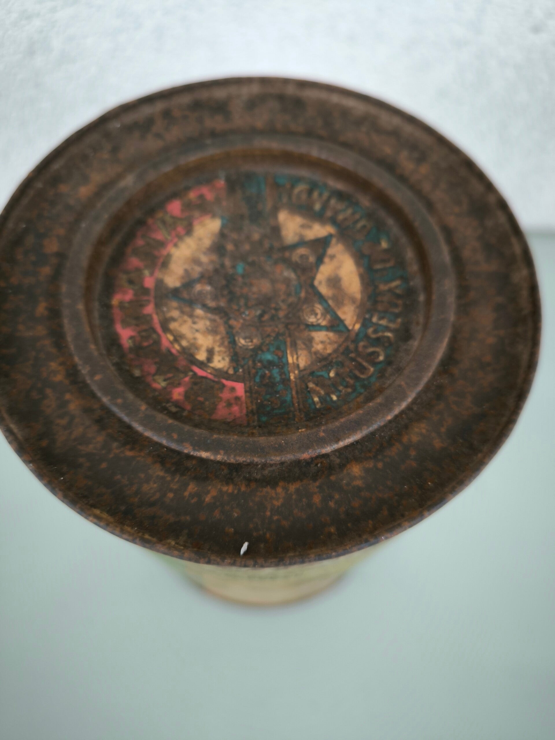 Boîte en tôle lithographiée de la marque BagnanasTraces d'usuresLe couvercle ne peut pas s'ouvrir en l'état.Hauteur 17cmLargeur 11.5cmProfondeur 11.5cmPoids 0.200g