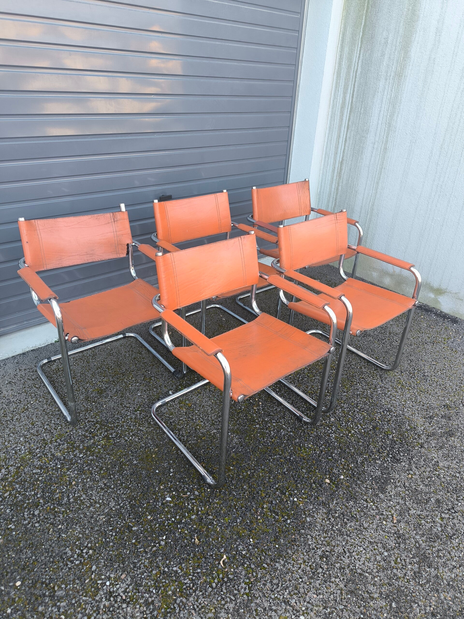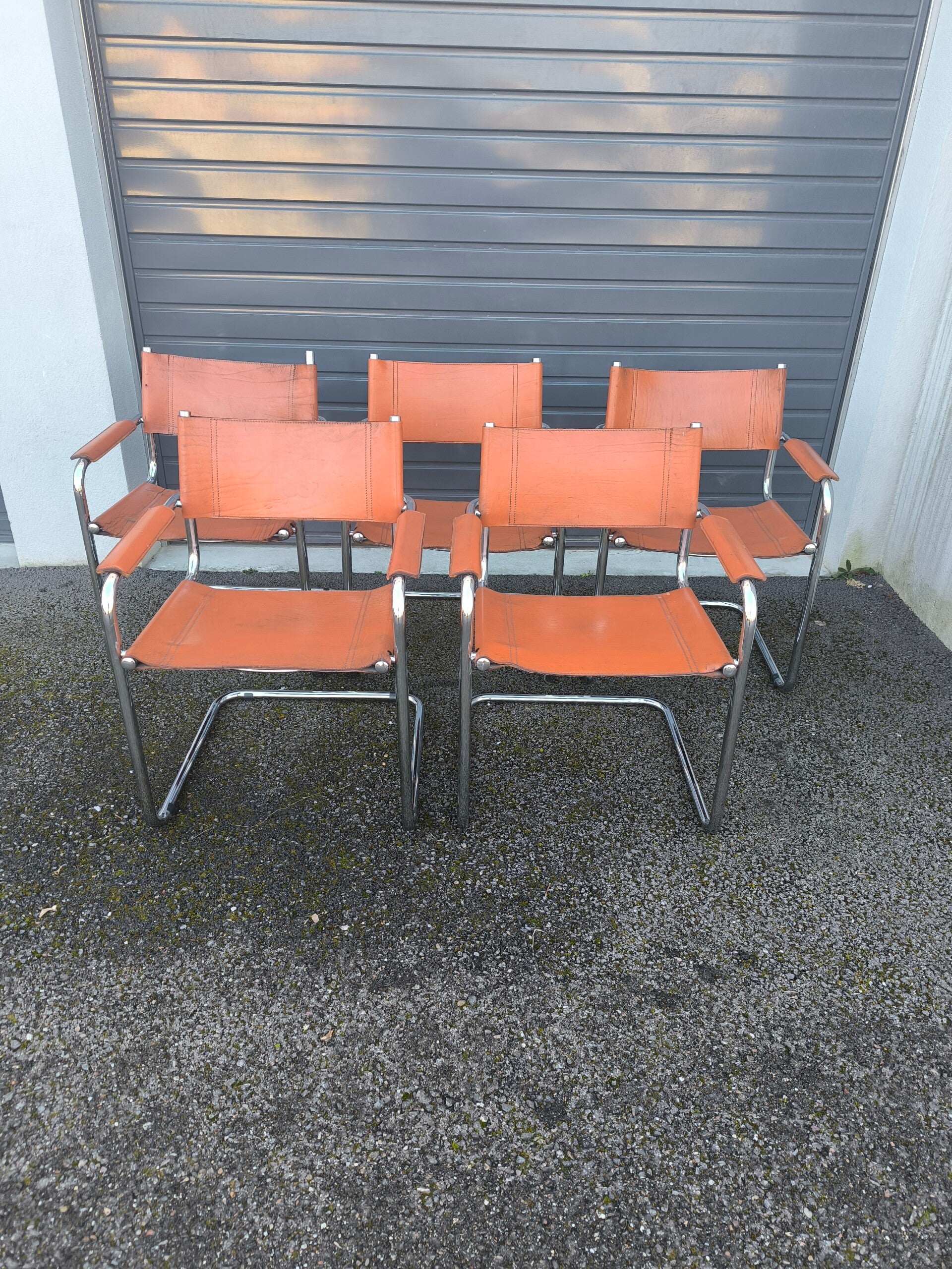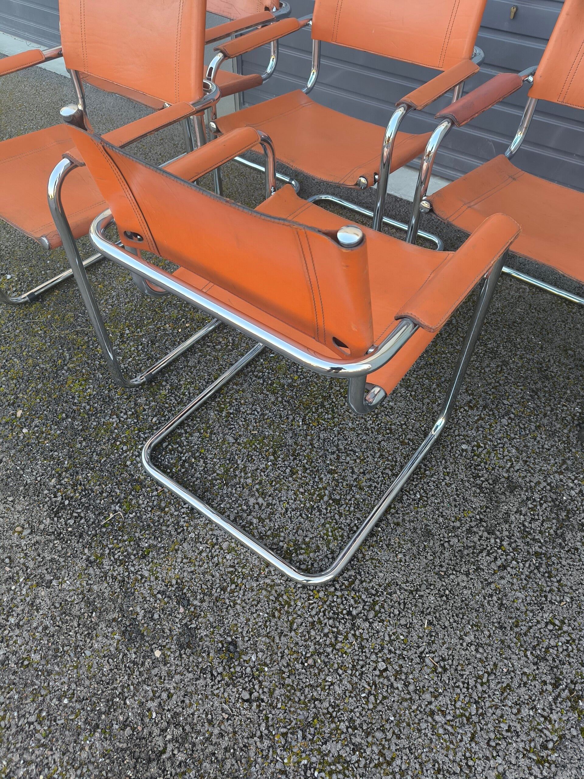 Ensemble de cinq chaises cantilever en métal chromé reprenant le modèle B34 de Marcel Breuer, réédité par la suite pour Matteo Grassi dans les années 1960.