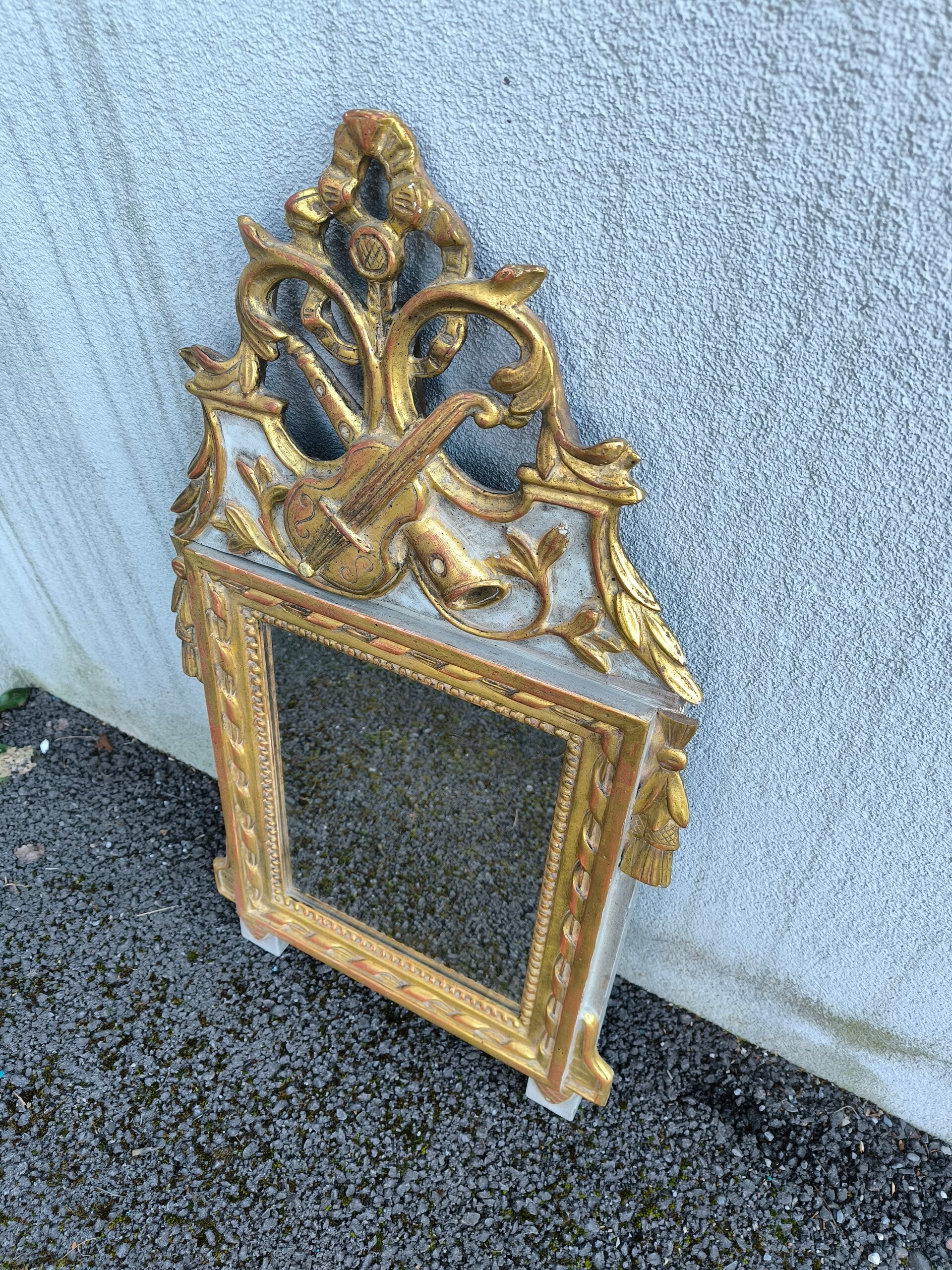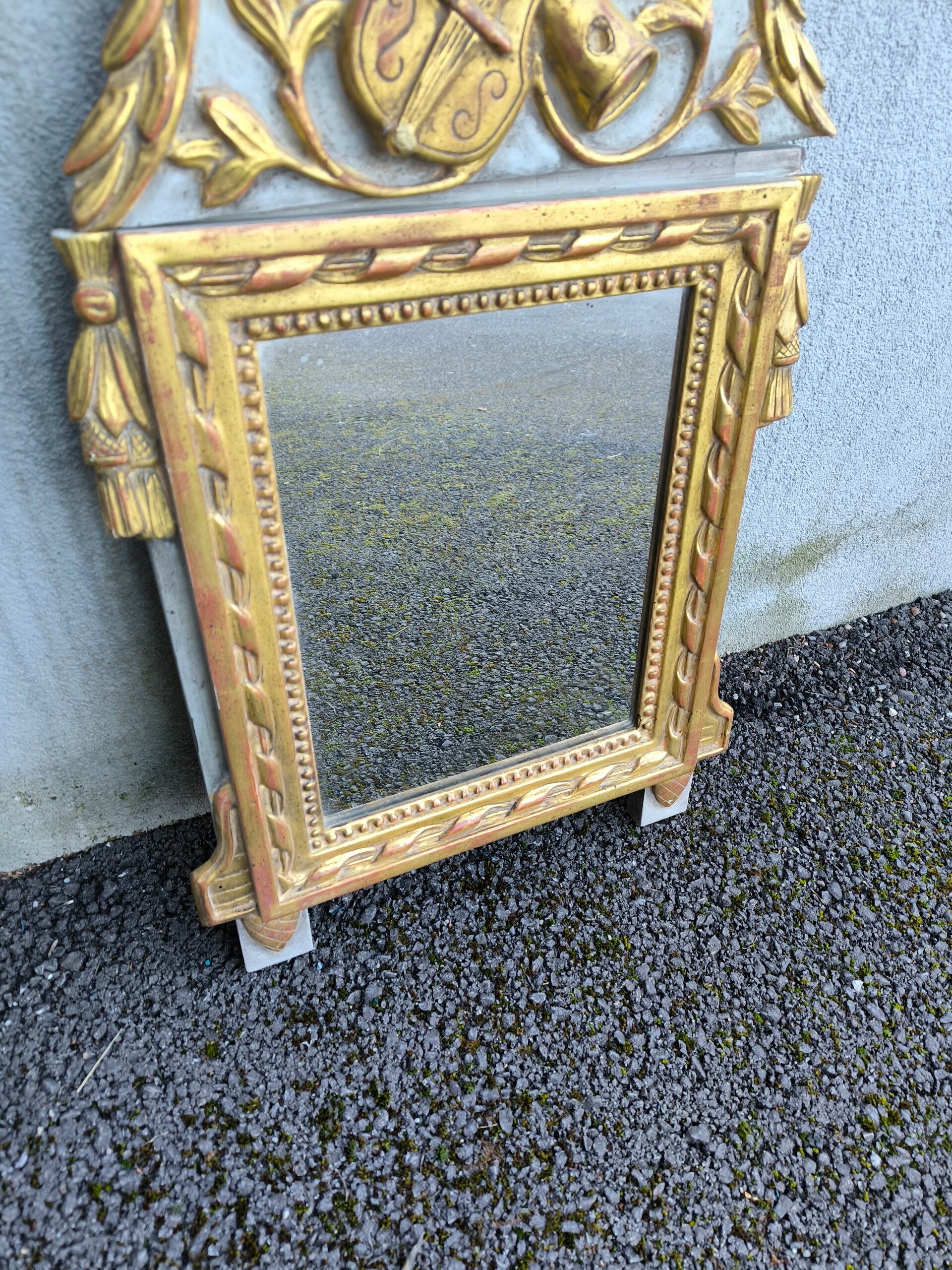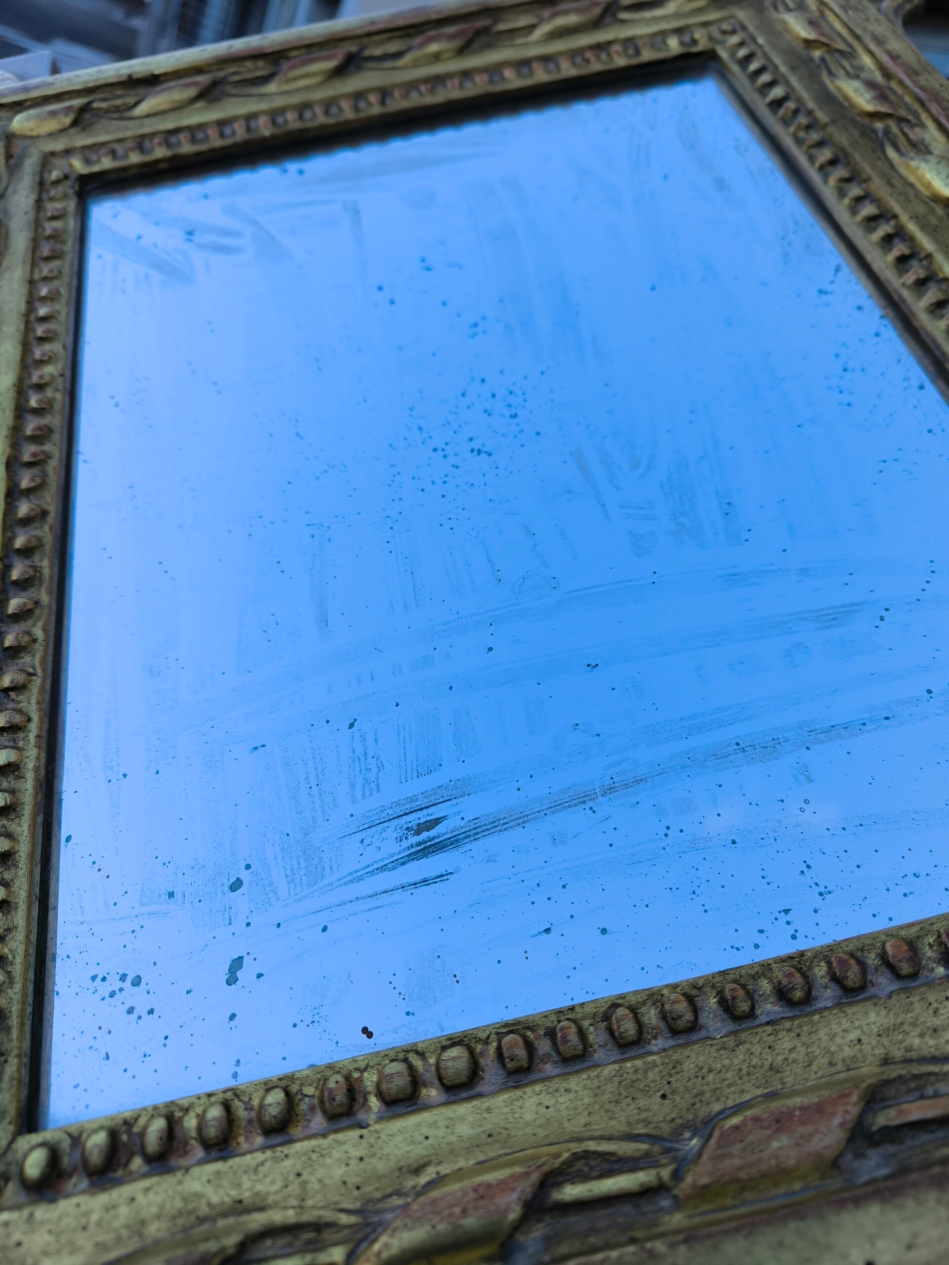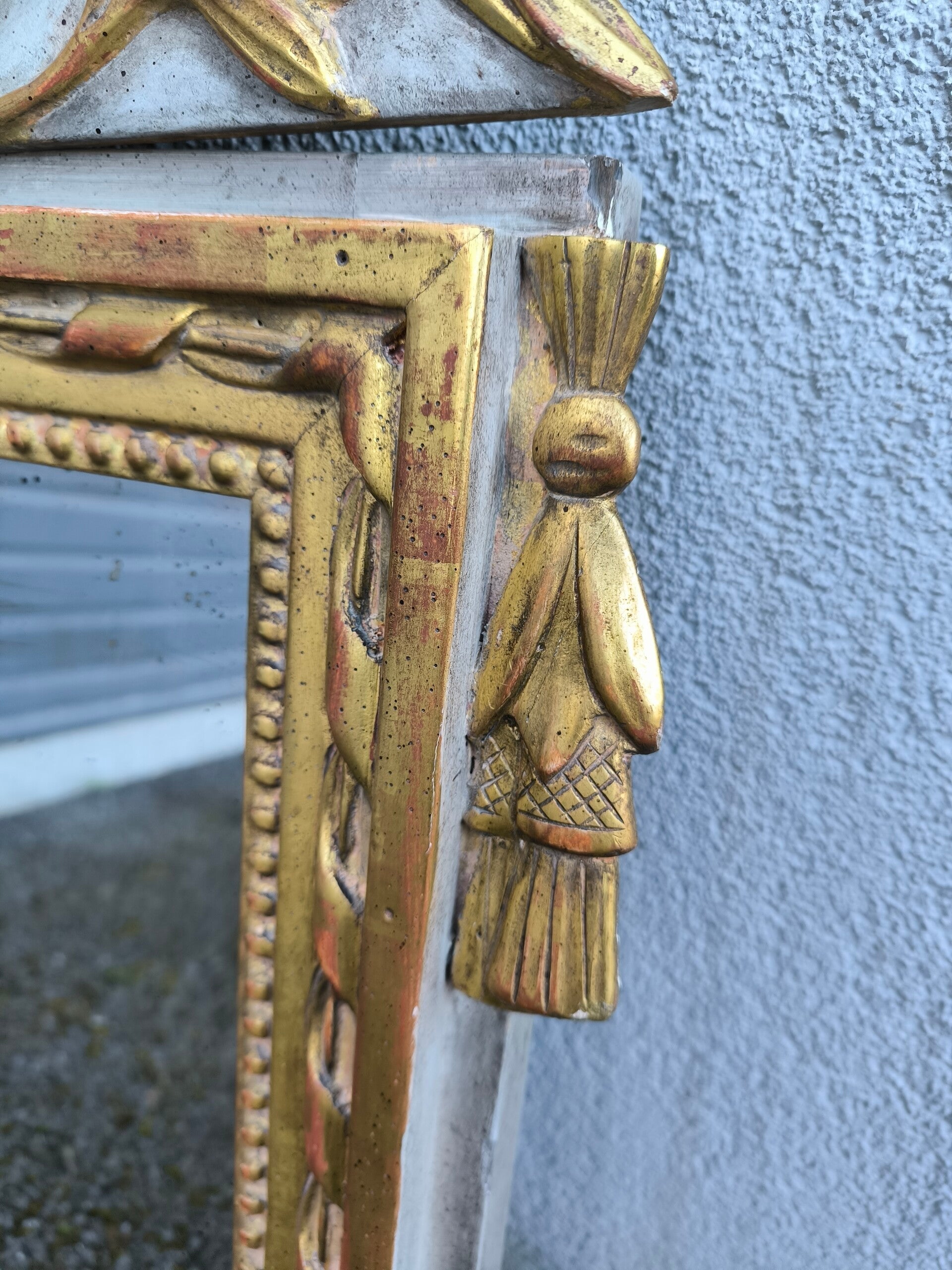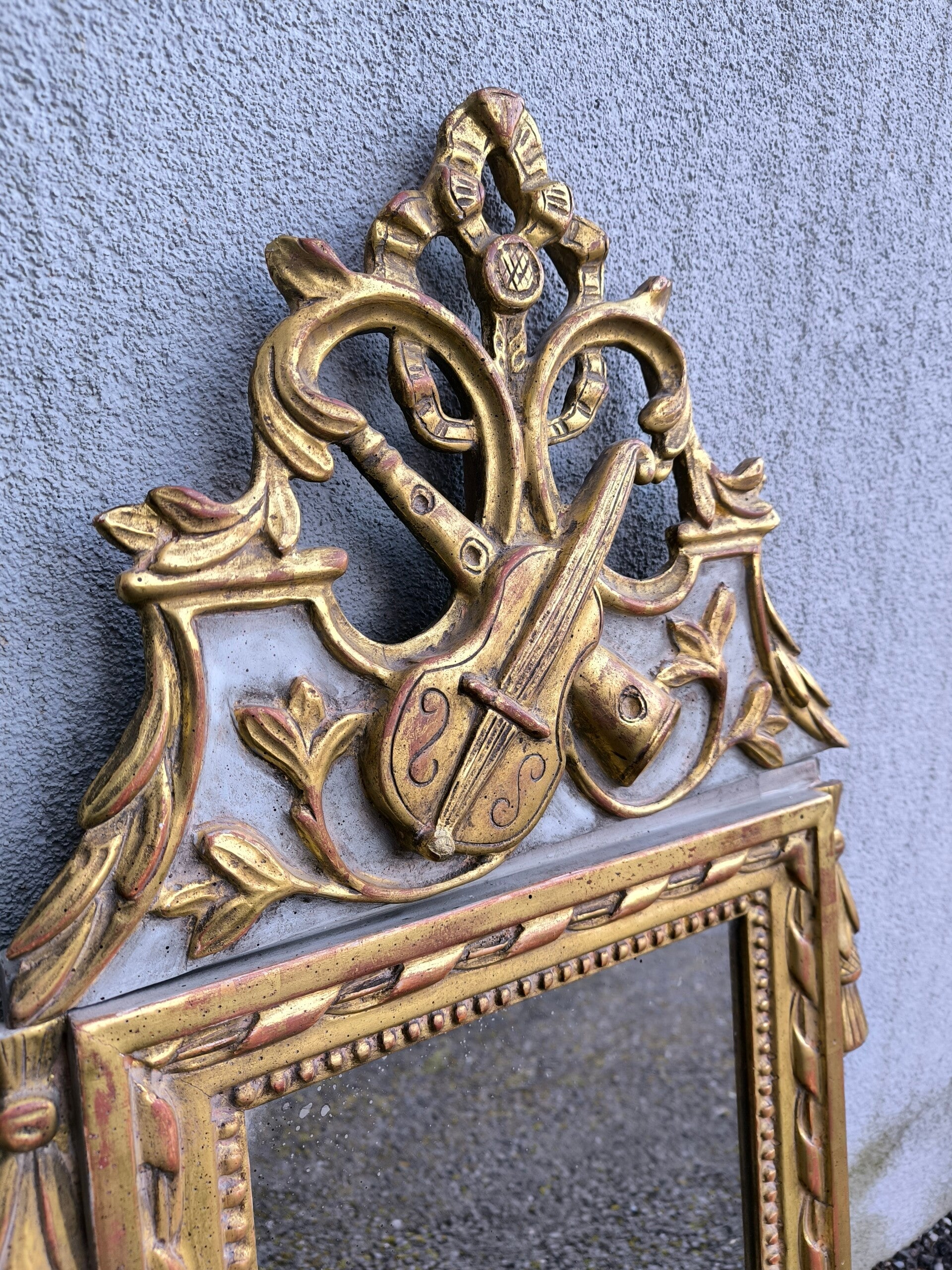 Miroir de style Louis XVI, en bois sculpté laqué vert et doré