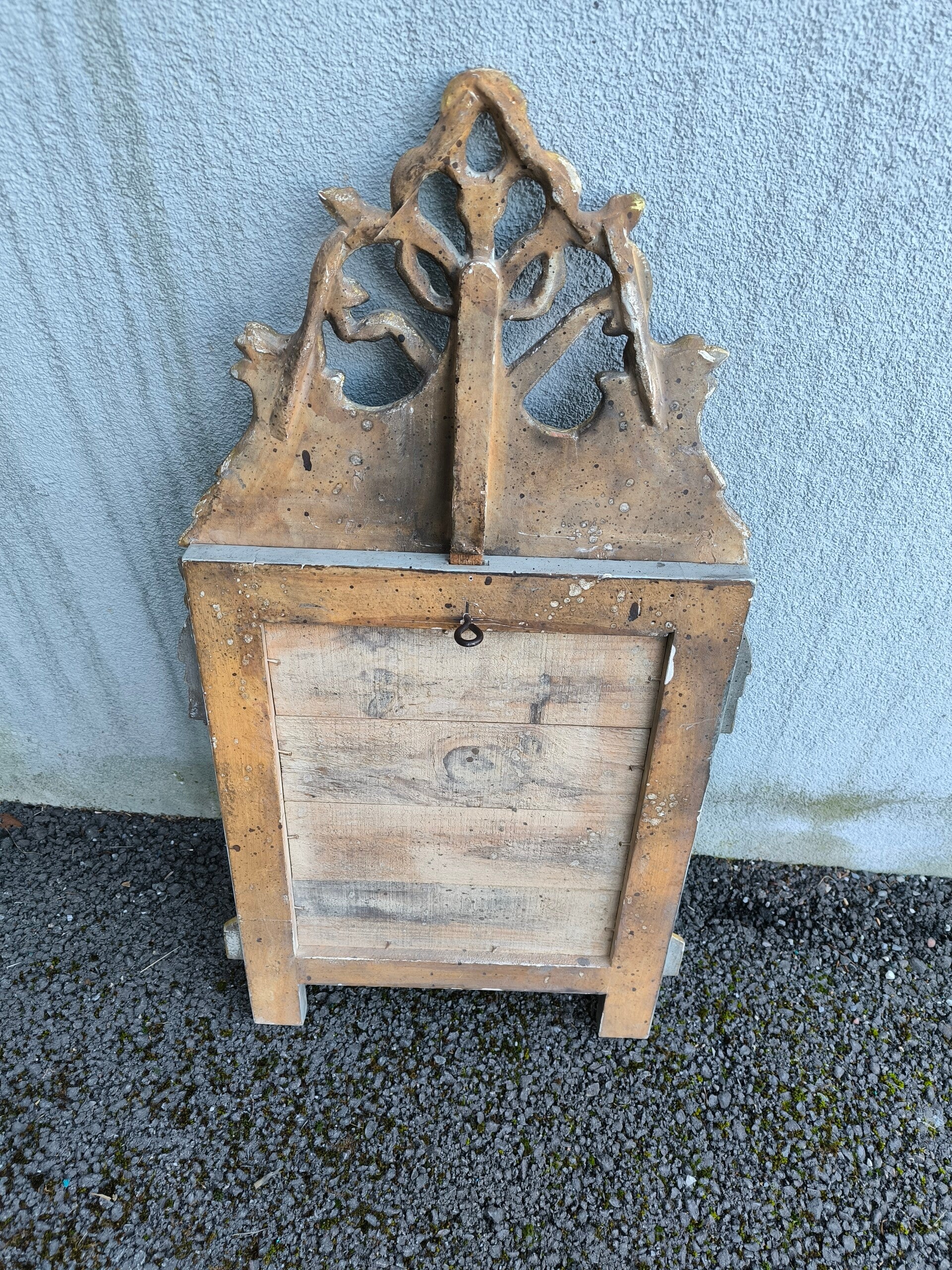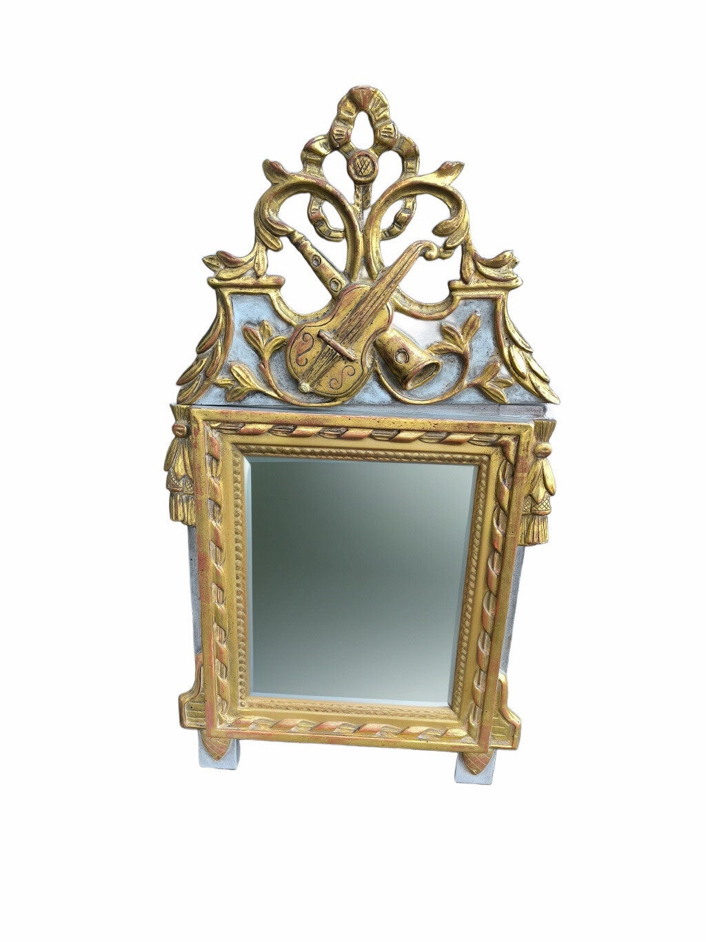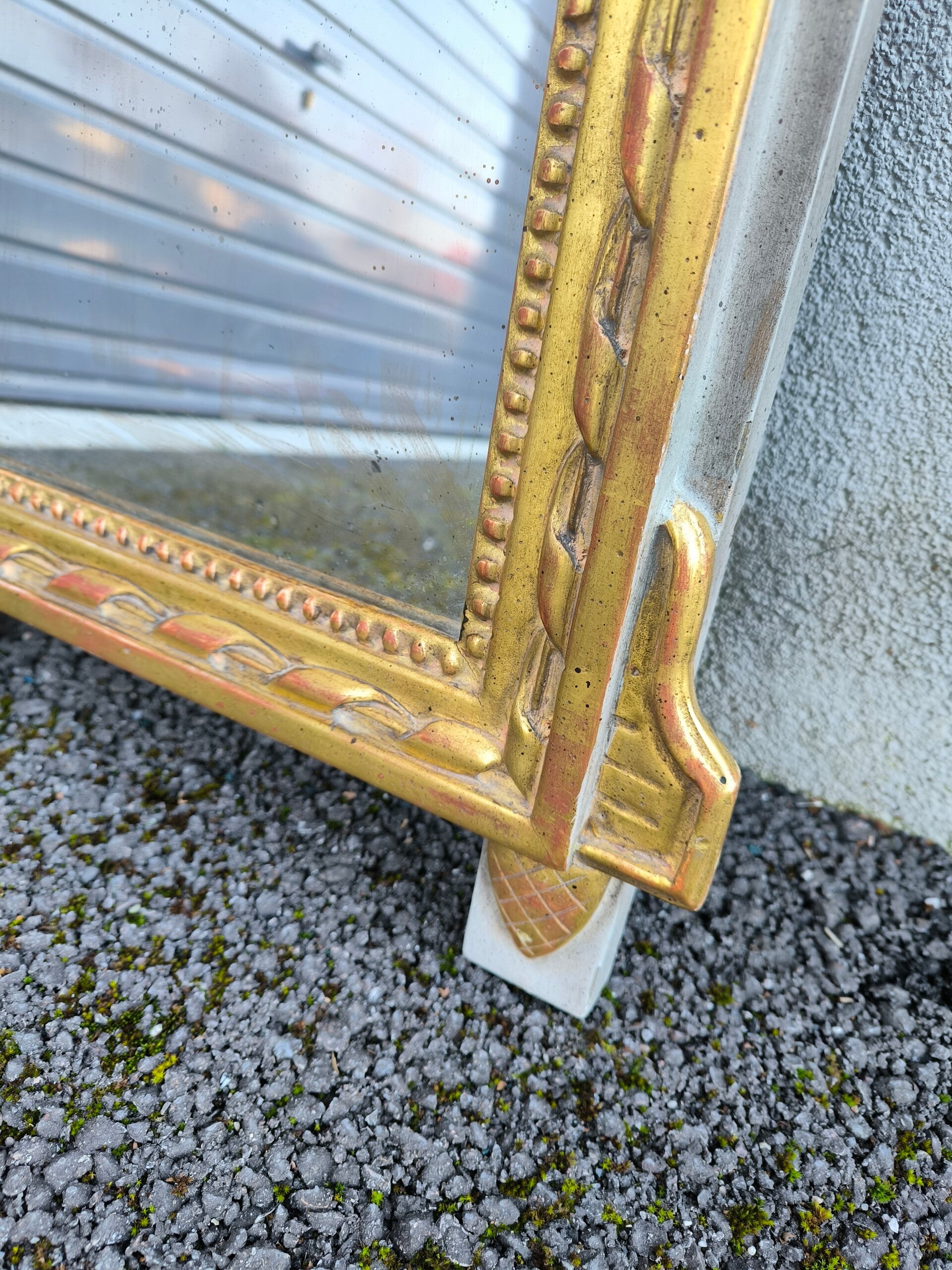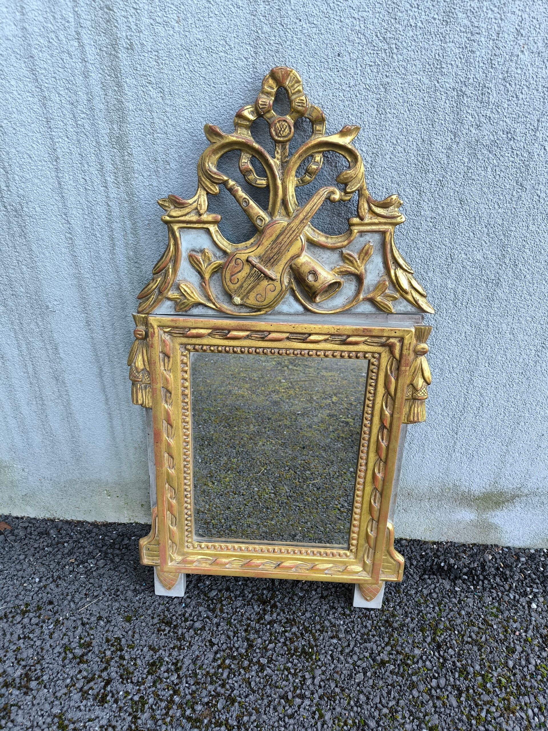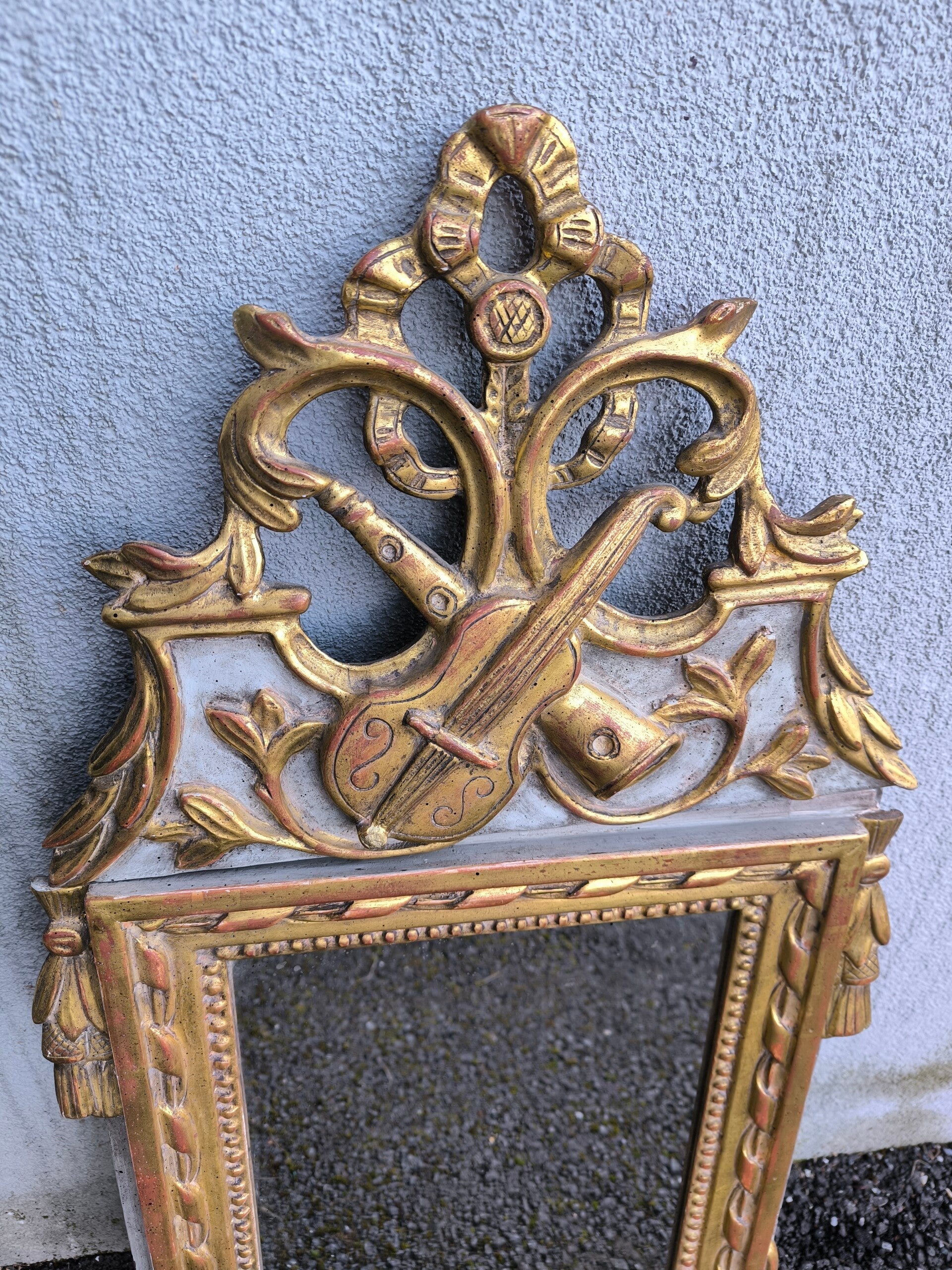 Miroir de style Louis XVI, en bois sculpté laqué vert et doré