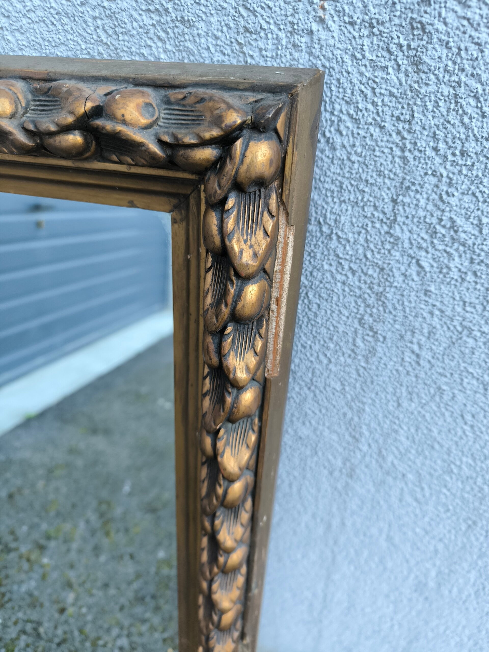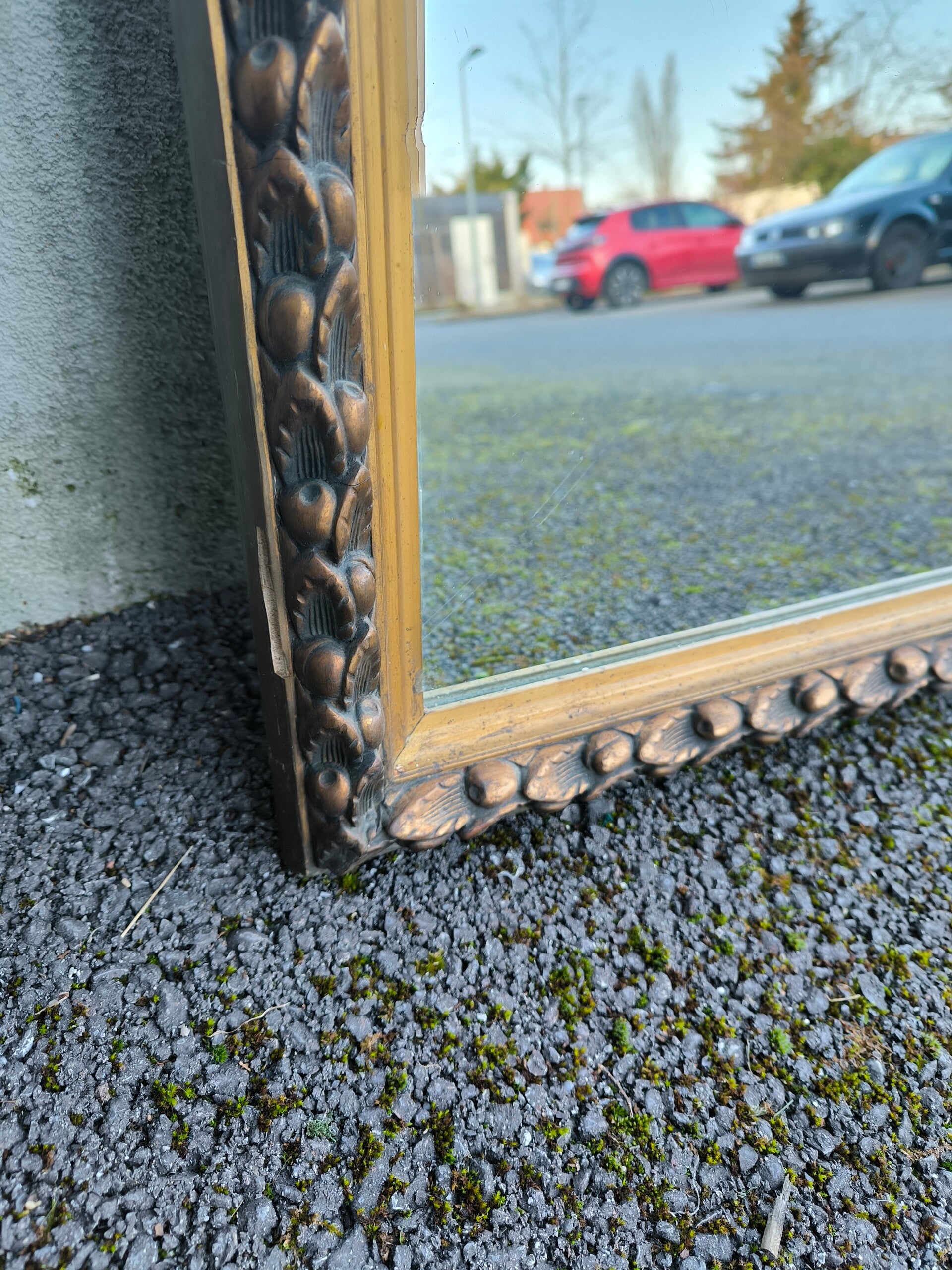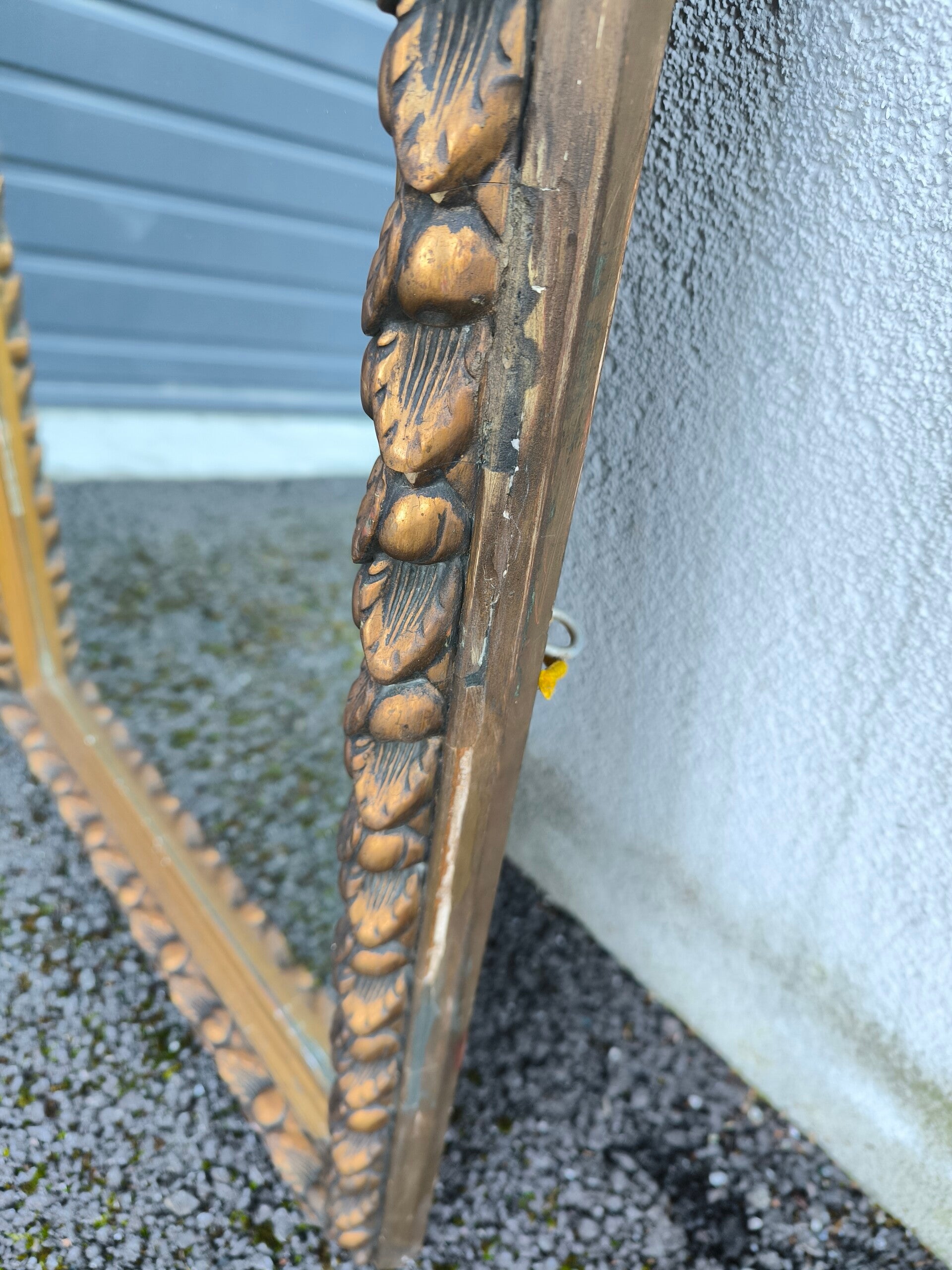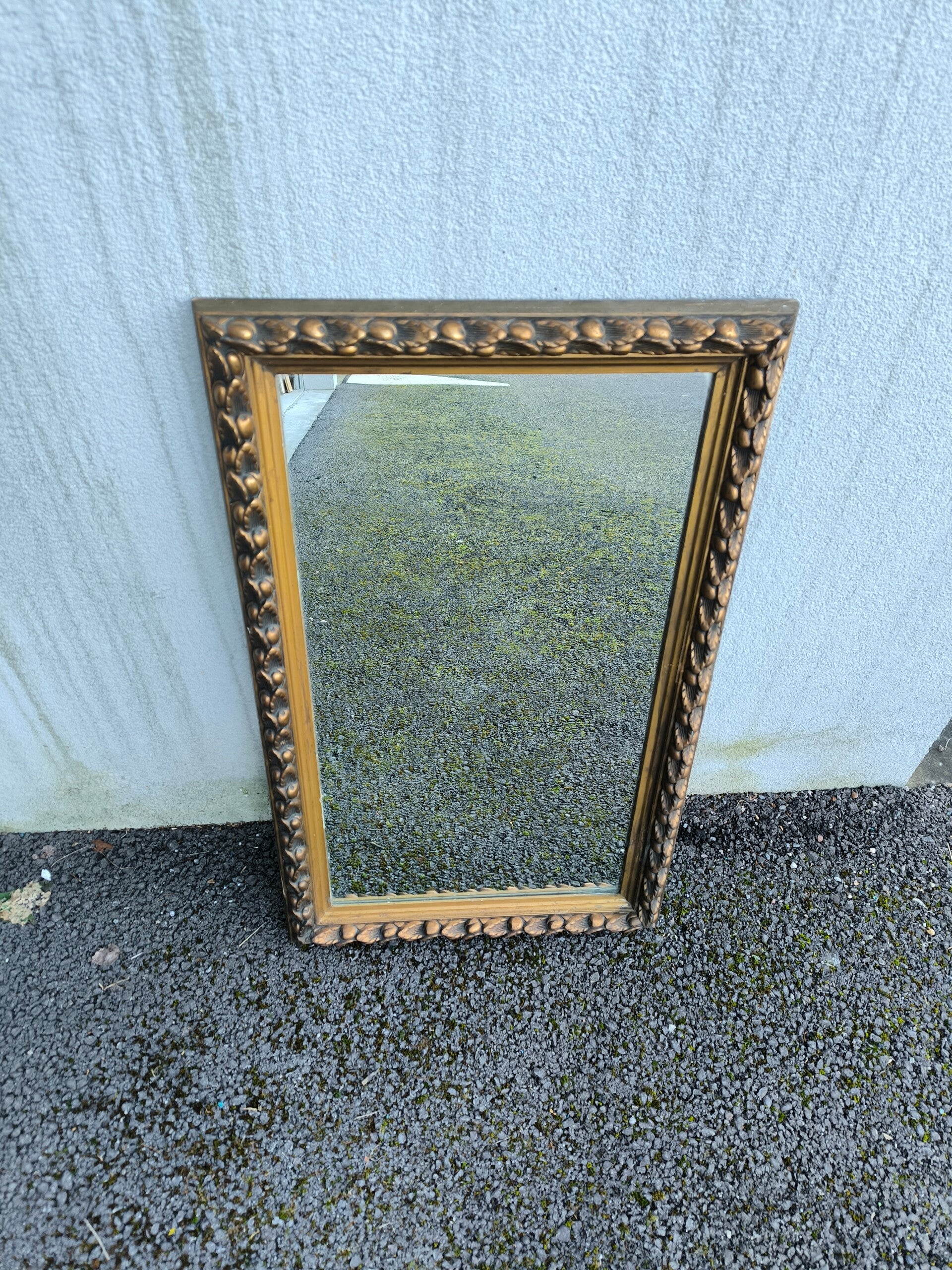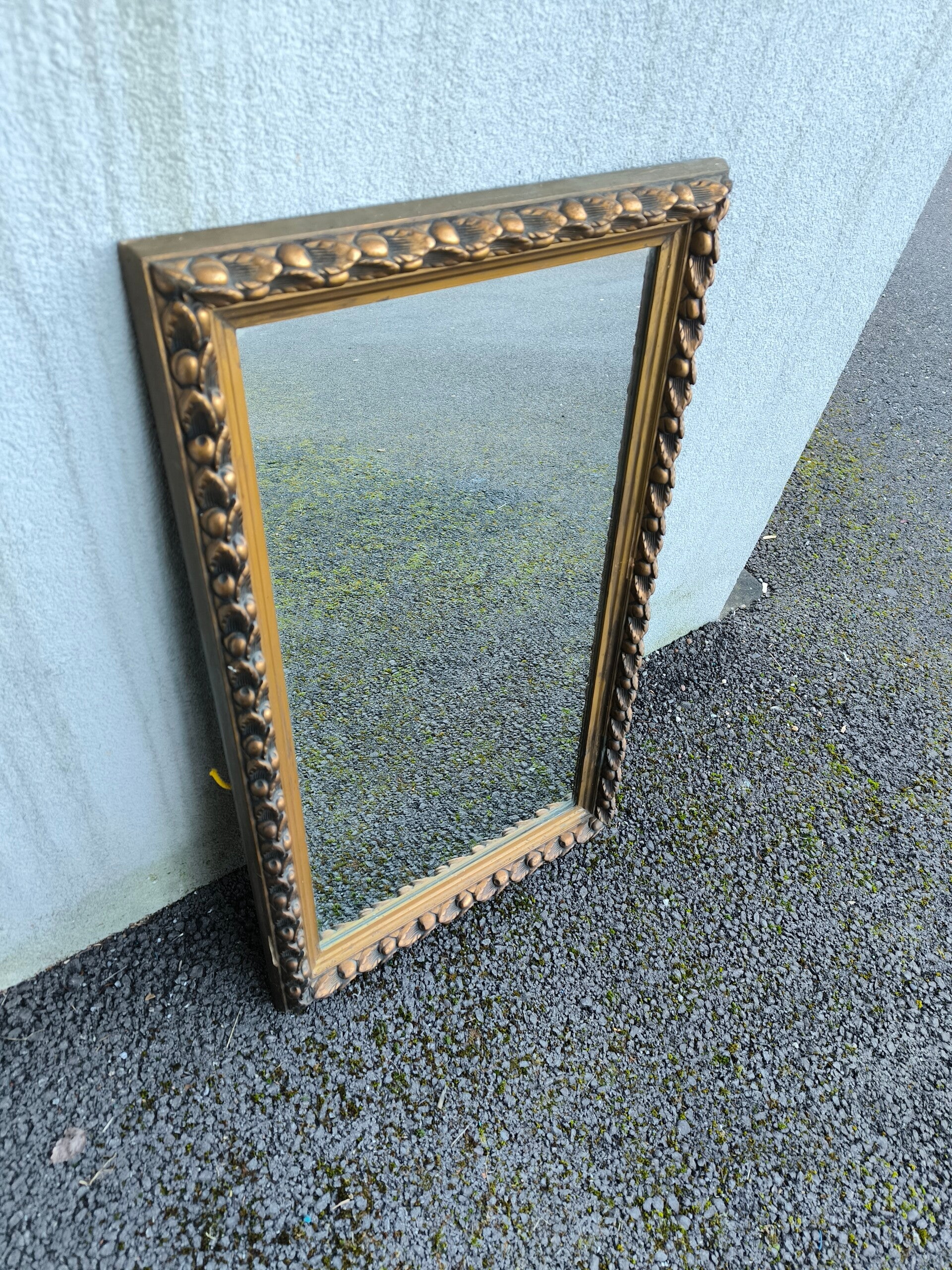 Miroir rectangulaire ancien, en bois sculpté doré.Traces d'usures avec manques sur les côtés.