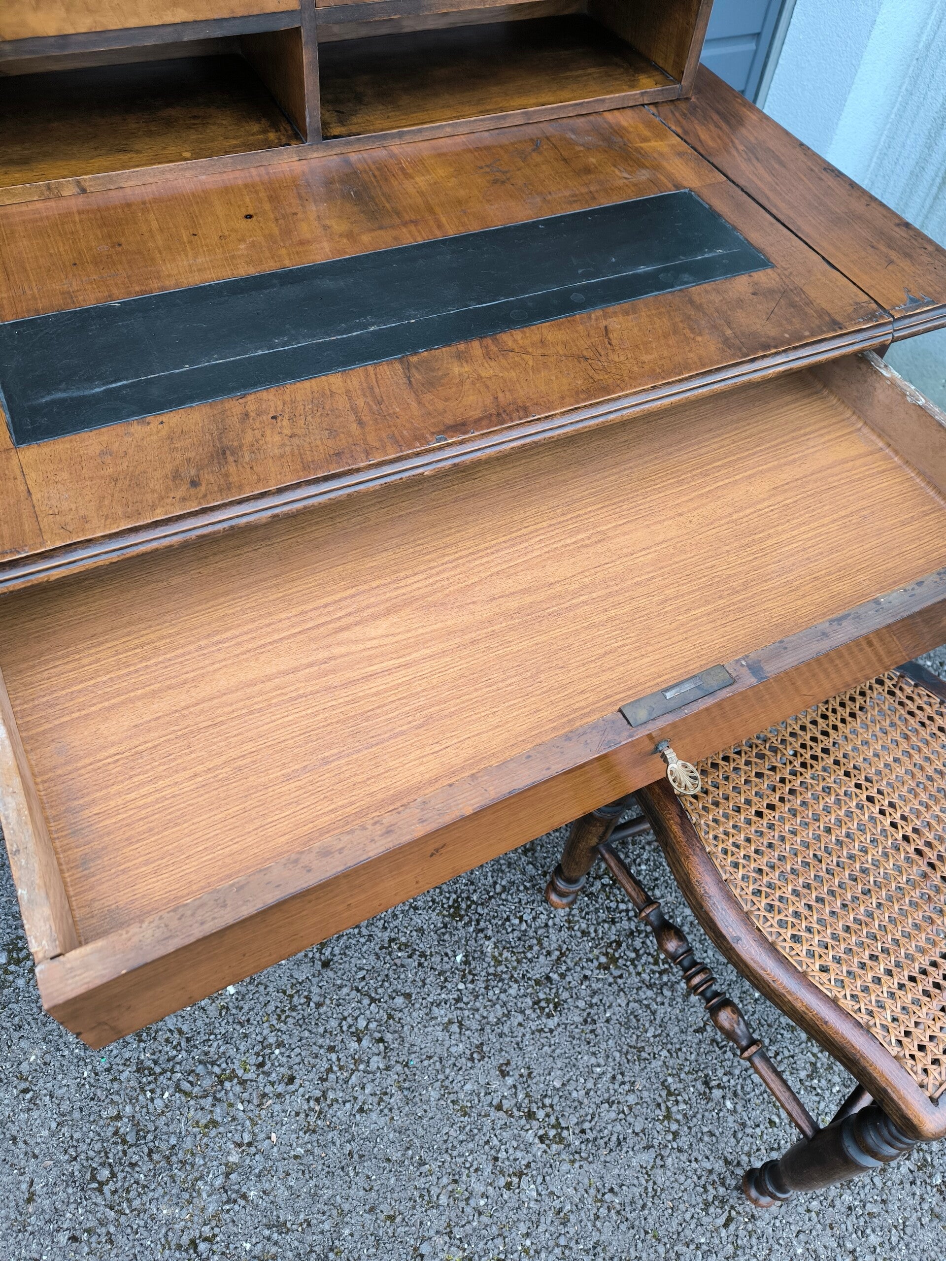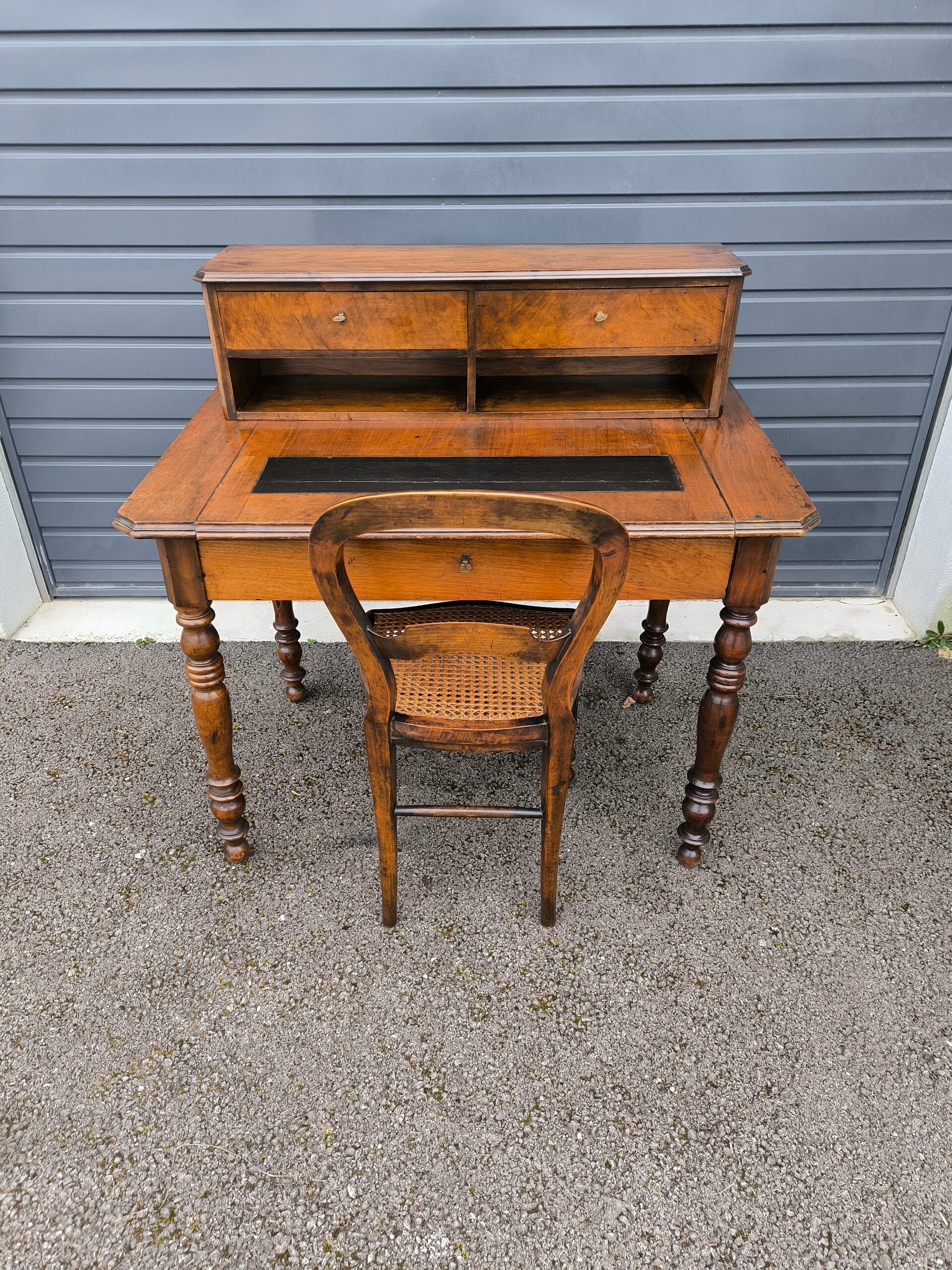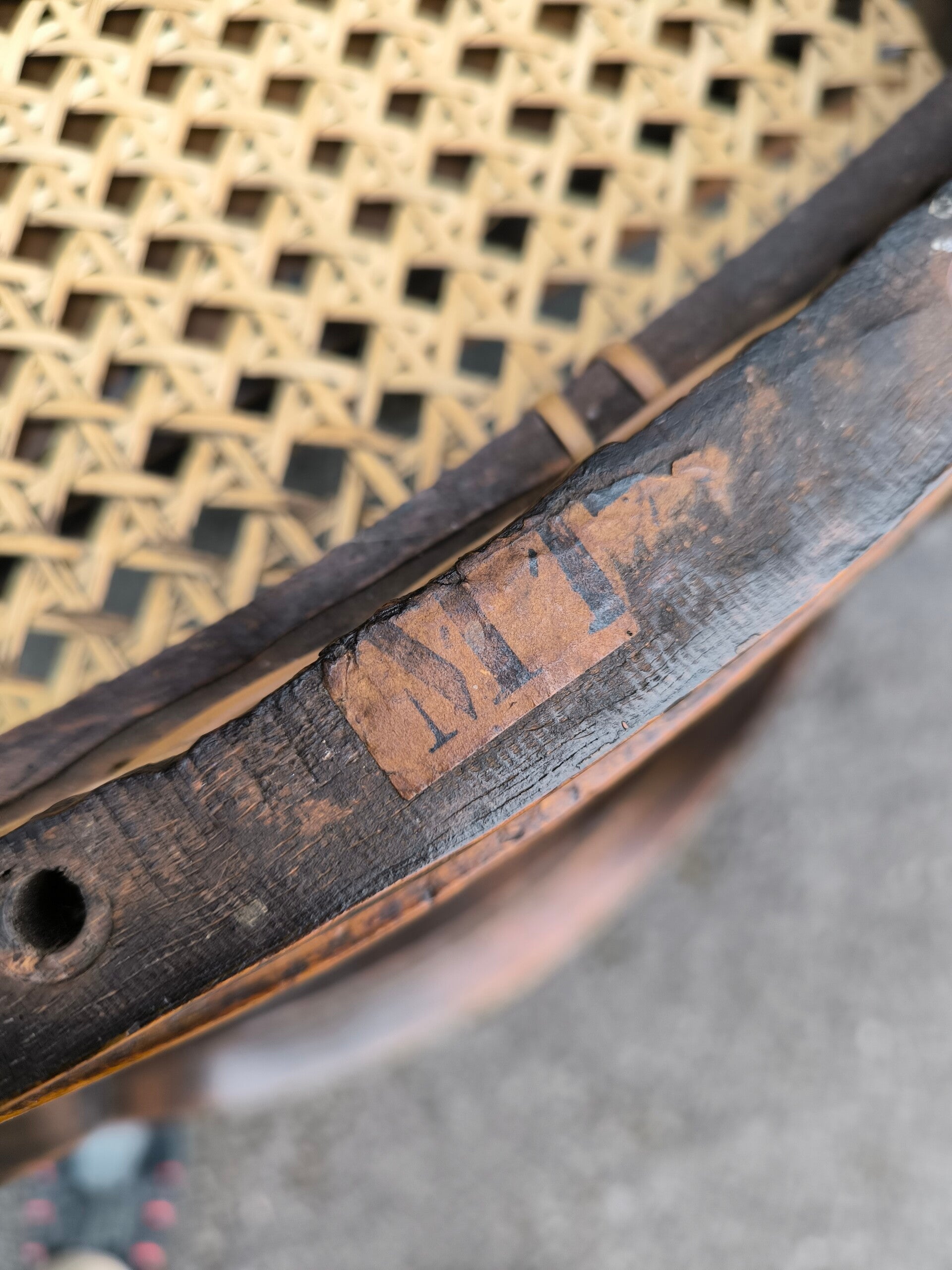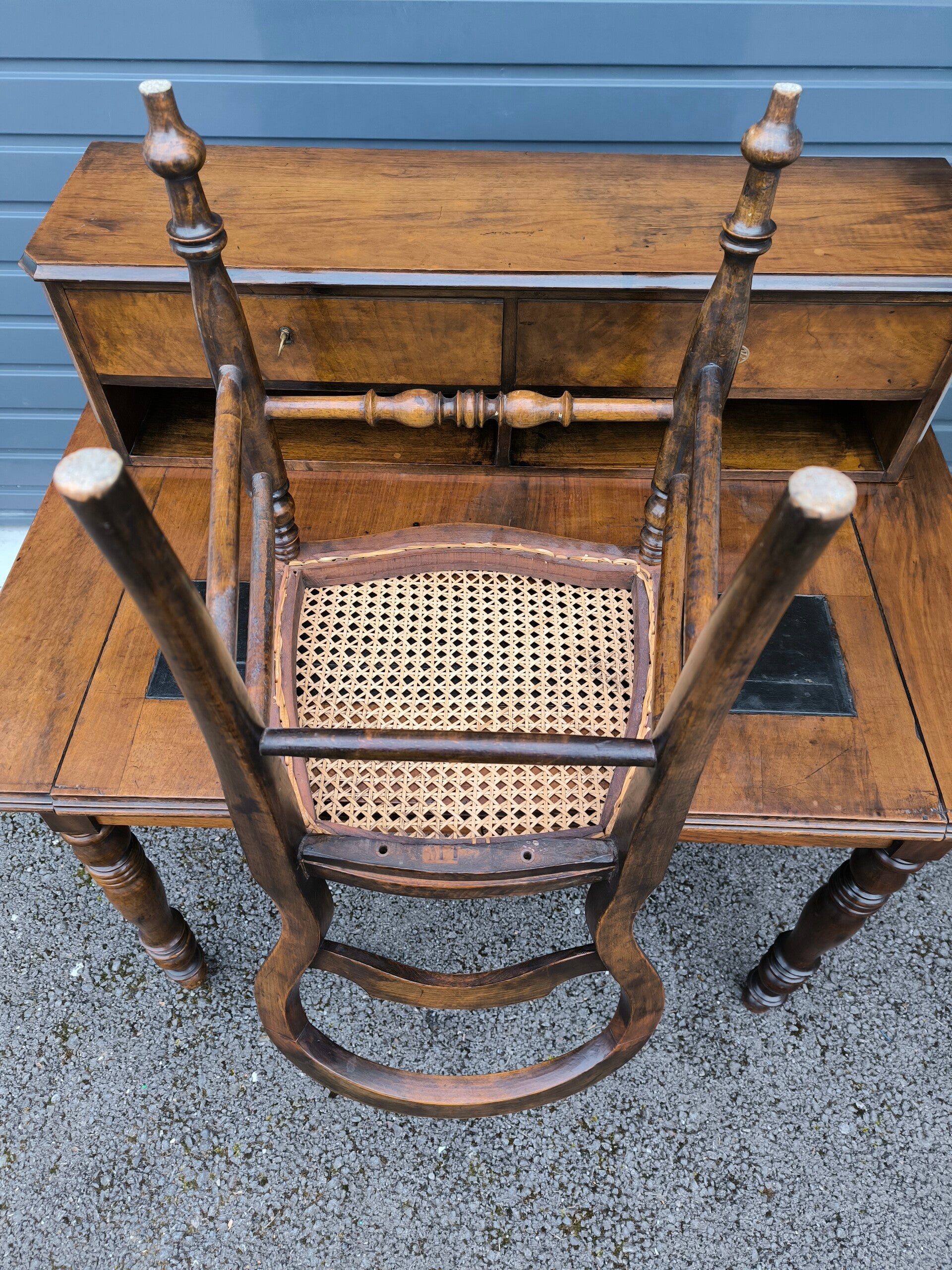 Chaise en cannage, étiquette estampillée, incluse avec le bureau.