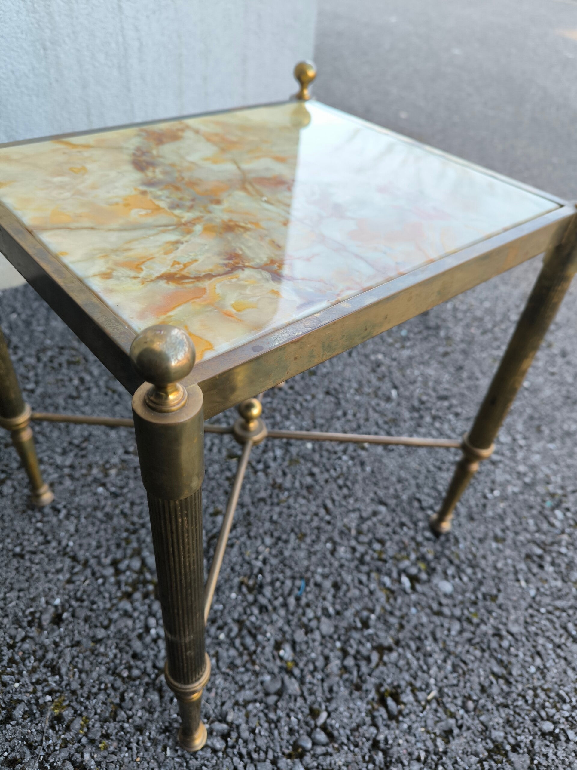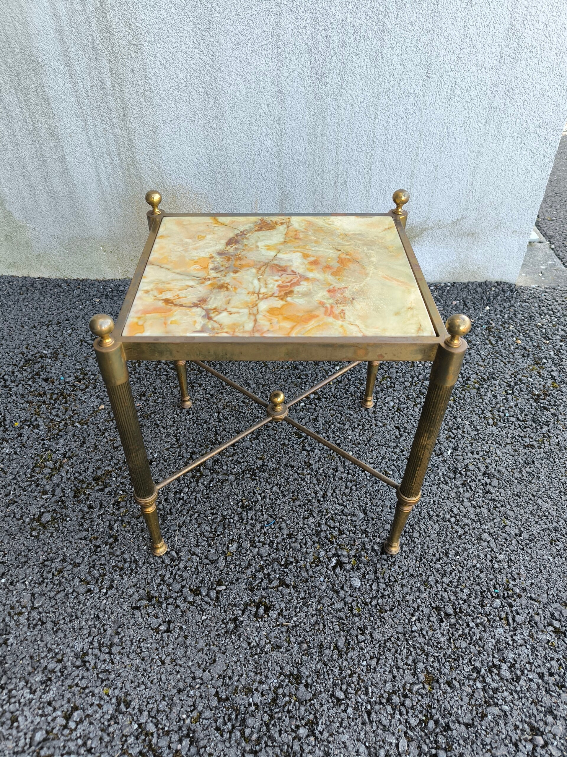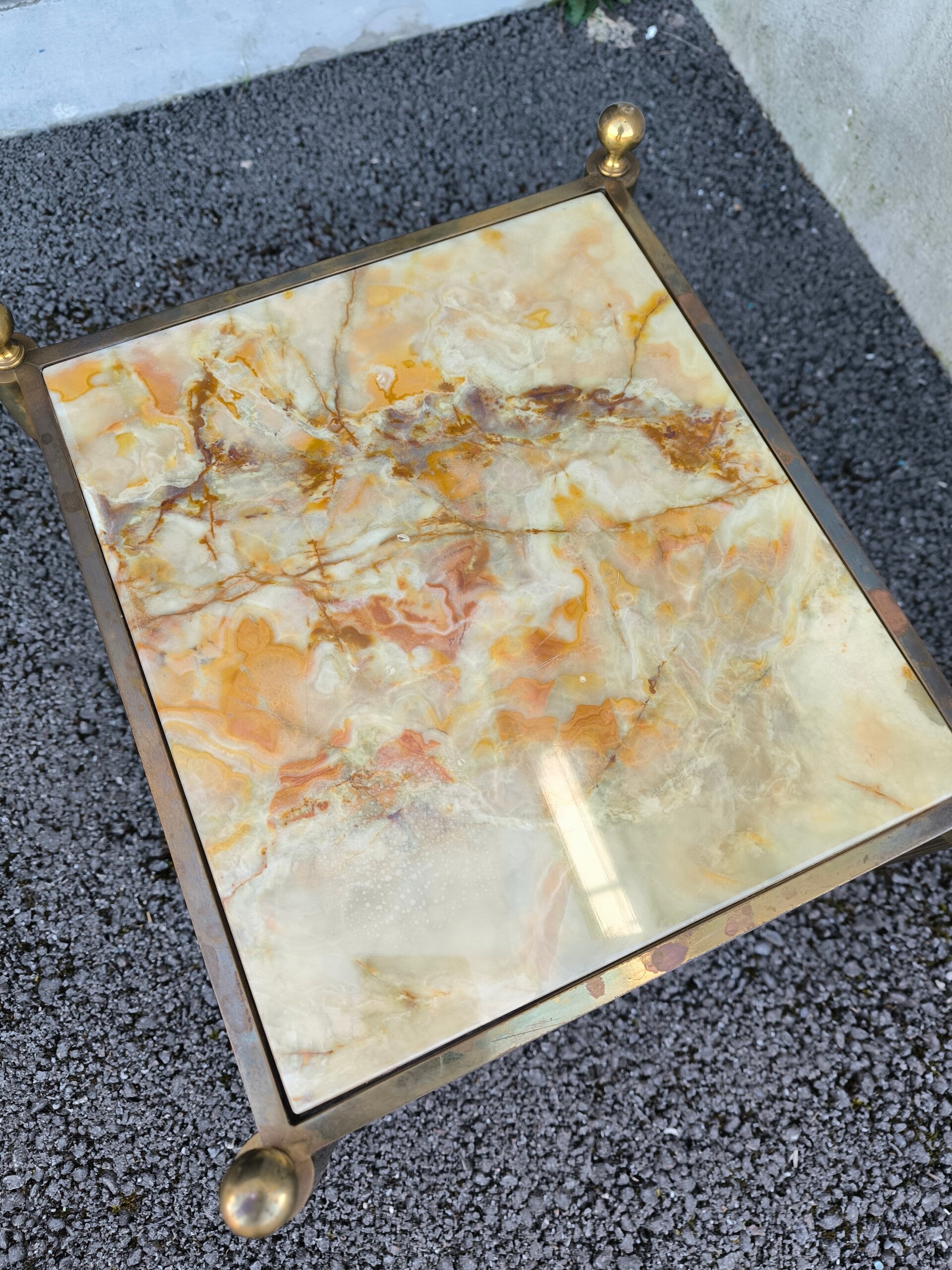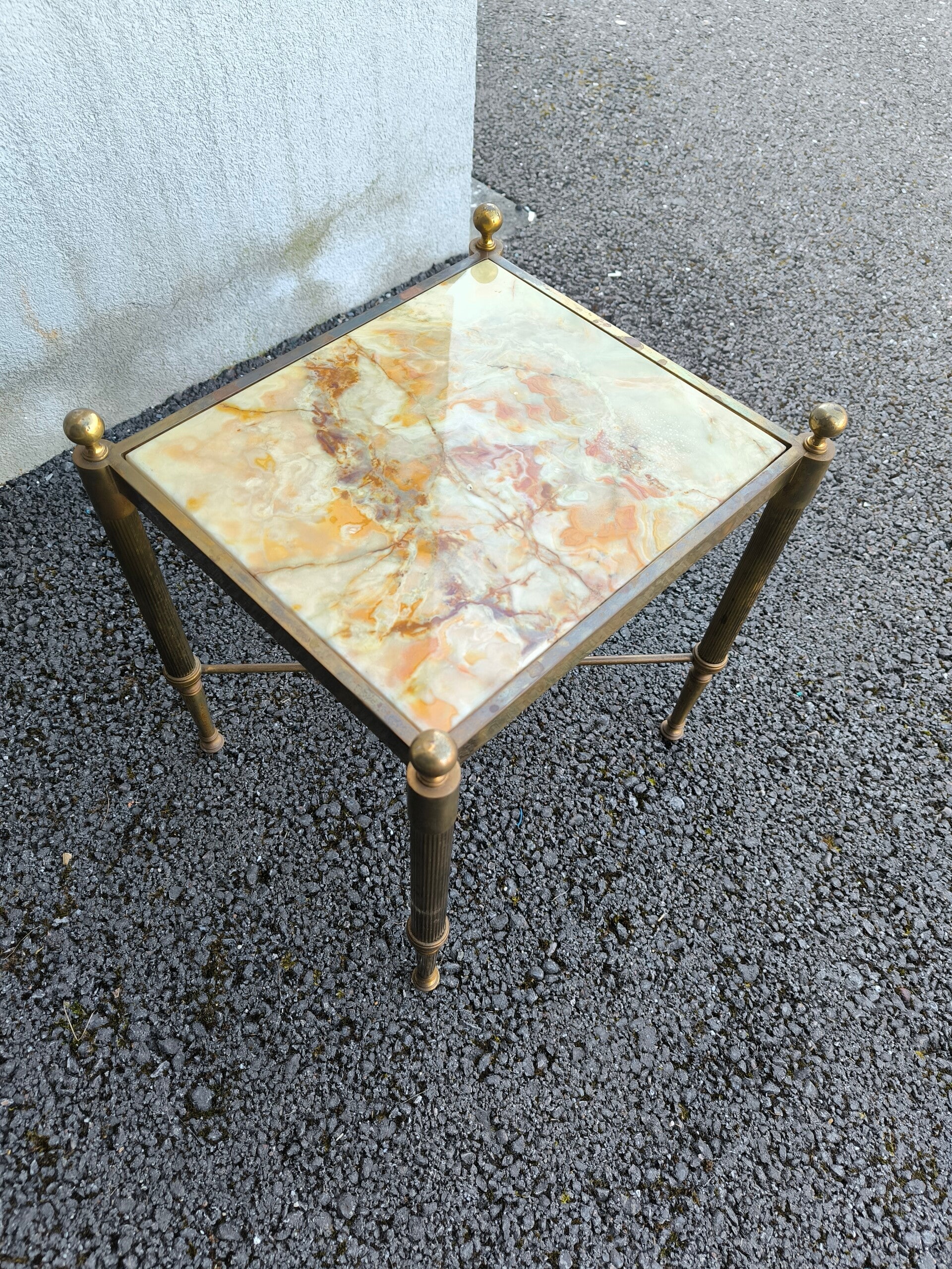 Table basse avec plateau onyx et structure laitonPlateau amovibleTraces d'usures