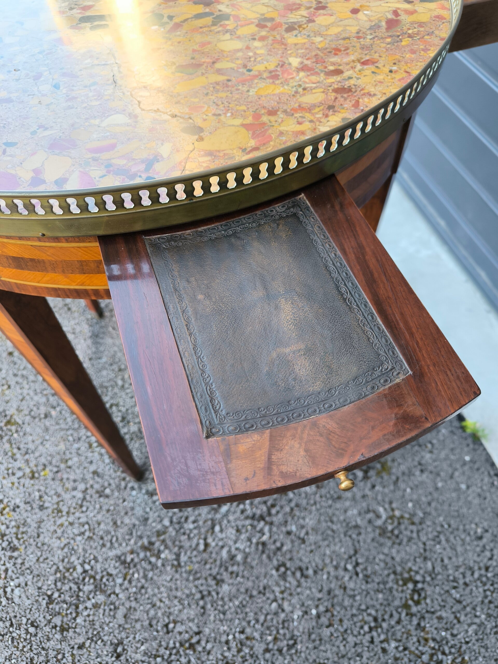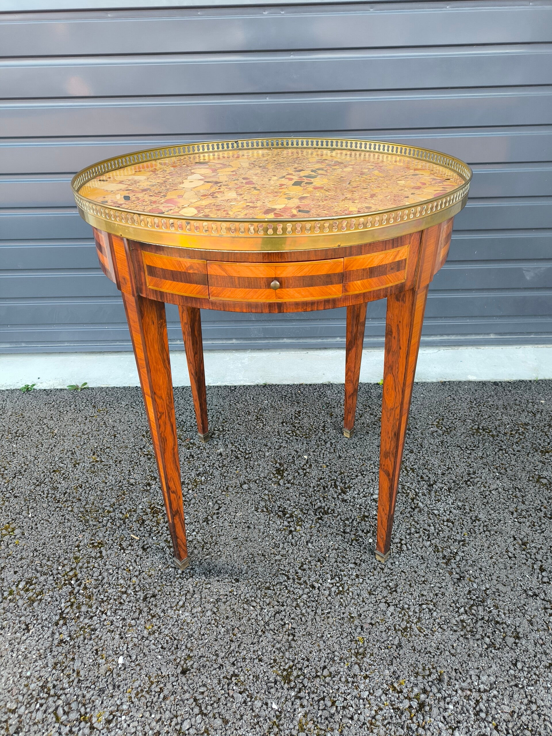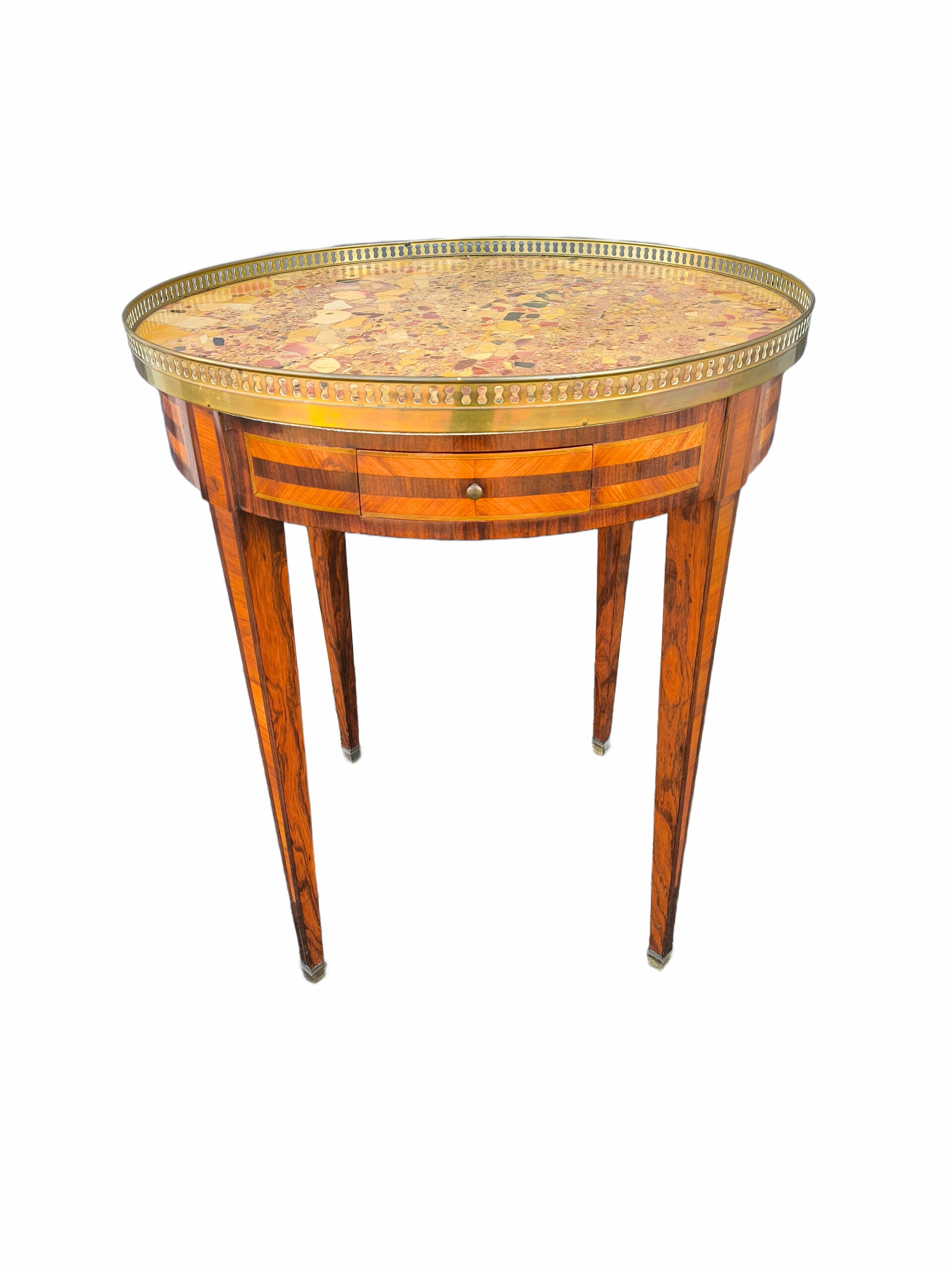 Table Bouillotte style Louis XVIDessus de marbre brèche d’Alep et galerie de laiton.Traces d'usures, restaurations.